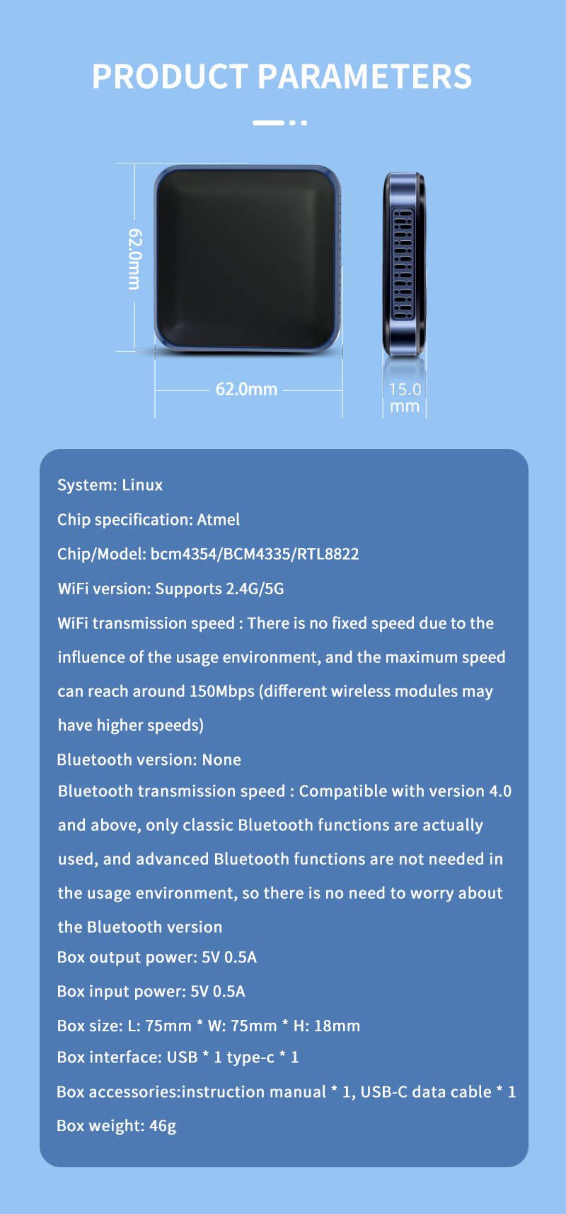 | WiFi version: | Supports 2.4G/5G |