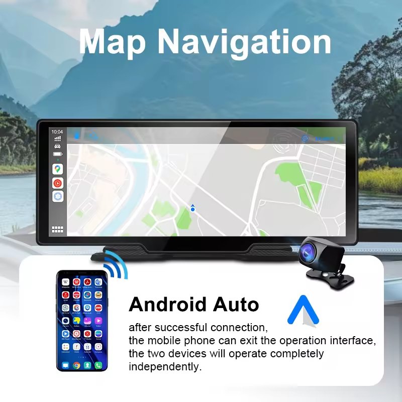 Expandable Storage & Wide-Range Operation: Holds up to 256 GB TF card (Class 10) for extended recording sessions. Rated for operation between –20 °C and 65 °C, this portable CarPlay display is engineered for reliable performance across diverse climates and driving conditions.
