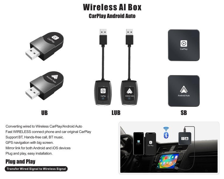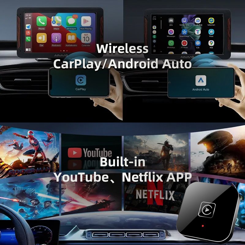 Take your in-car experience to the next level with the Portable CarPlay AI Box—a compact, high-performance smart adapter that brings wireless CarPlay, Android Auto, and powerful streaming support to vehicles with factory CarPlay systems. Just plug it into your USB port and unlock a world of wireless convenience, media, and apps like Netflix and YouTube, all in one sleek device.