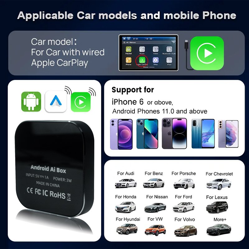 Universal Compatibility: Designed to work with 99% of vehicles equipped with wired CarPlay (excluding BMW models). Simply plug into the USB port of your existing CarPlay system—no modification required.