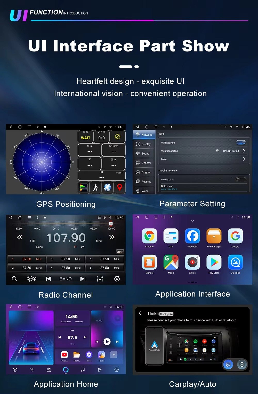 Smart Connectivity Meets Powerful Performance: The Android Touch Screen CarPlay & Radio unit blends high-speed networking, rich media features, and customizable UI for a seamless in-car smart entertainment experience. Whether you’re streaming, navigating, or multitasking, this unit keeps you connected and in control.