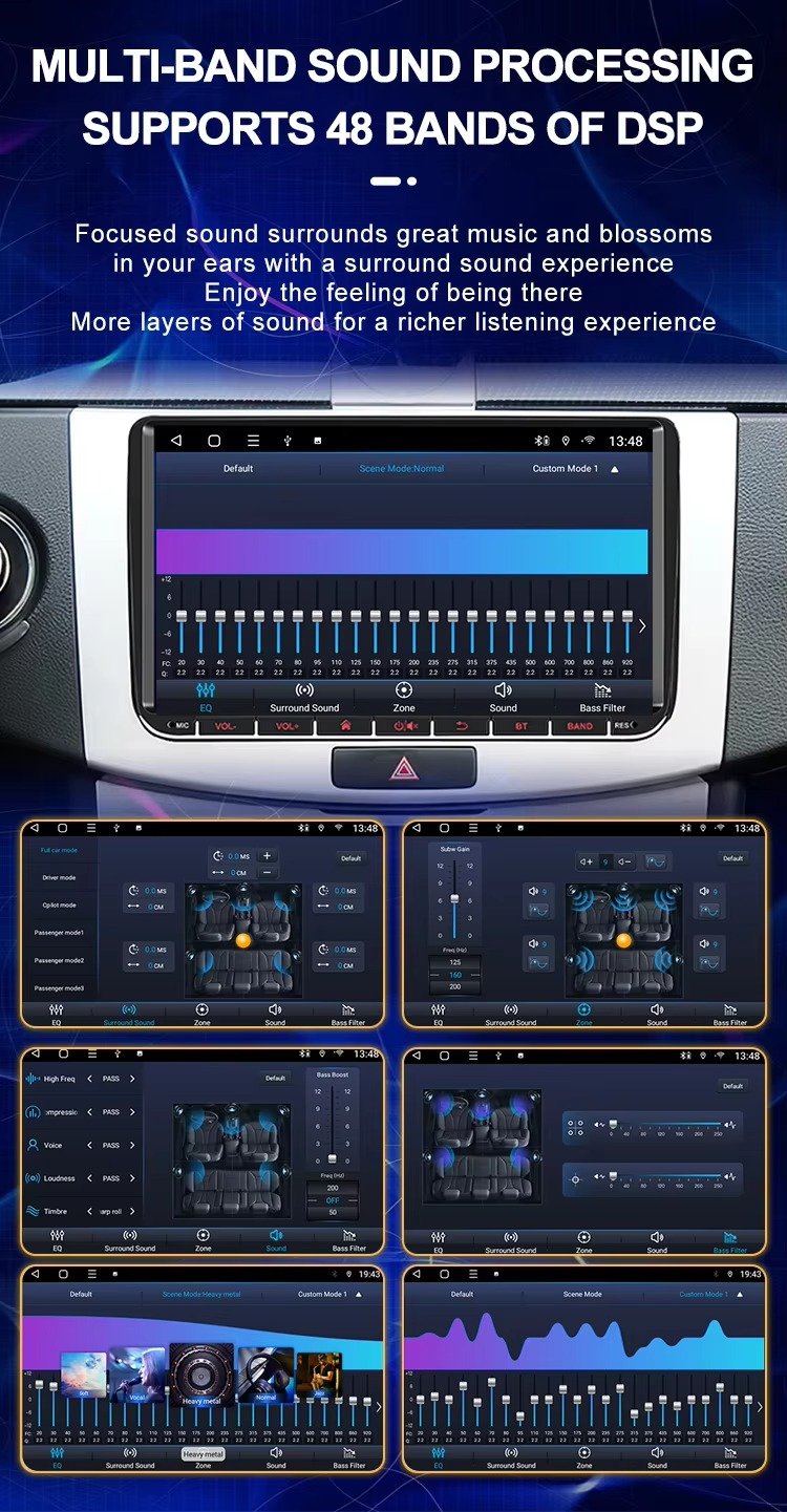 Advanced Sound and Radio Options: Delivers premium audio with DSP 48 EQ sound effects and optional radio chipsets (8035 / 7708 / 4755) for FM + AM radio bands, ensuring high-quality broadcast reception.