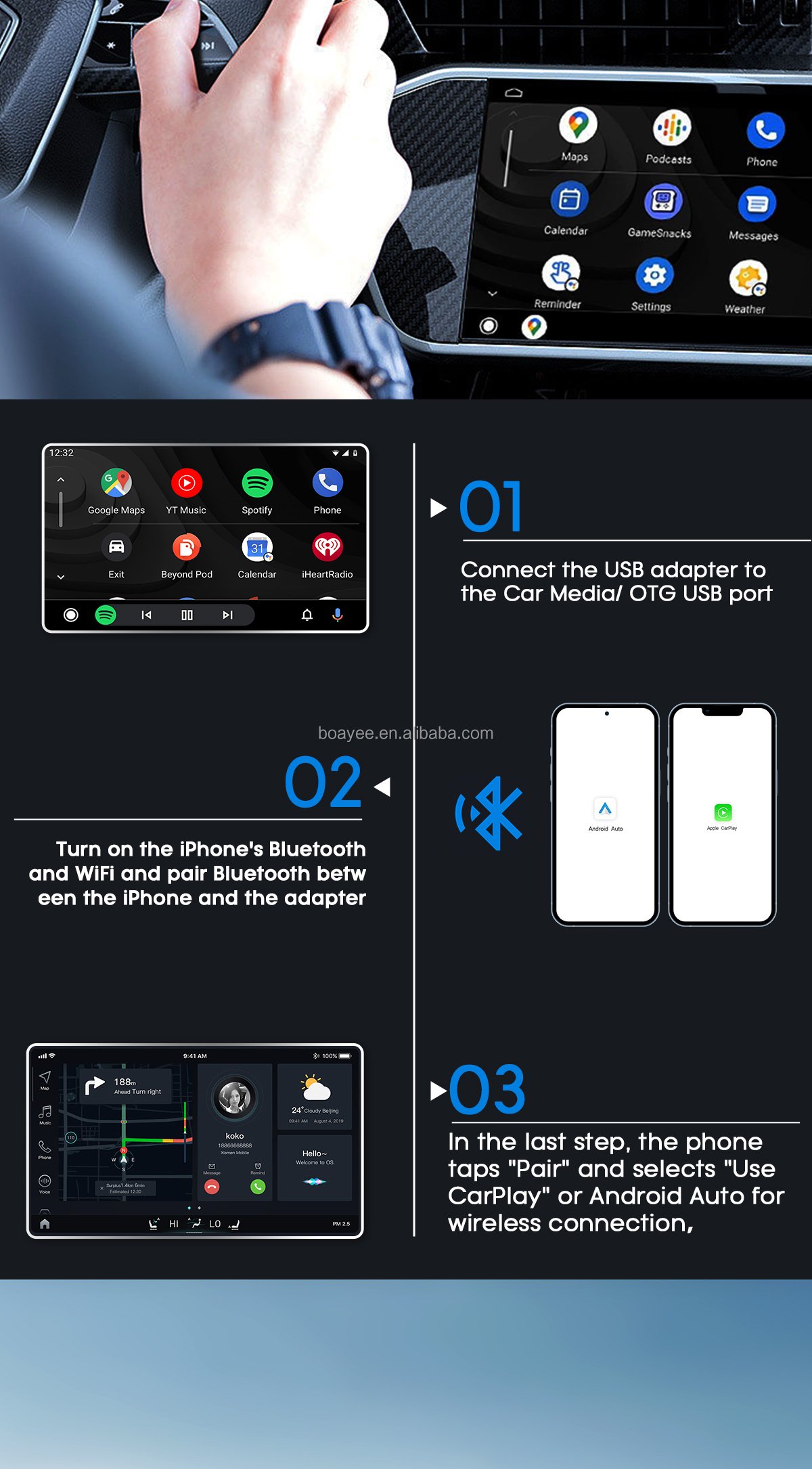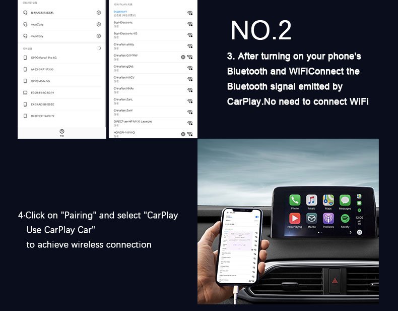 Wireless Connectivity (WIFI + Bluetooth): Experience the ease of dual-connection transmission with this adapter, combining both WIFI and Bluetooth to enable a stable, wireless connection. Enjoy all the benefits of Apple CarPlay and Android Auto without the clutter of physical cables.