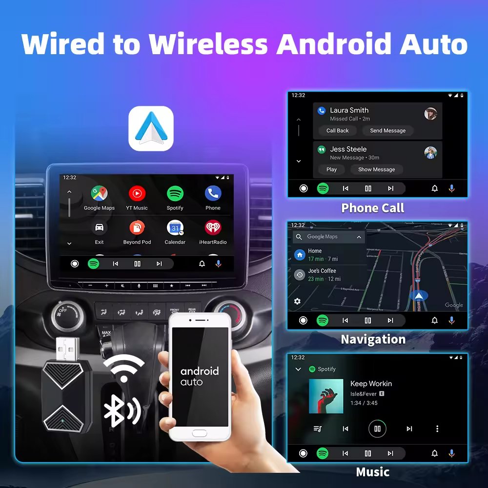 iOS & Android Support: Whether you drive with an iPhone or Android device, the CarPlay AI USB supports both operating systems for wireless CarPlay and Android Auto. Access your favorite apps, voice assistants, and messaging services without ever plugging in a cable.