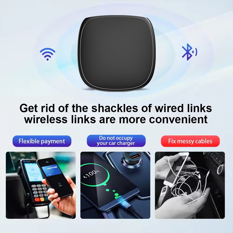 Effortless Wireless Upgrade:Converts your original wired CarPlay setup into a wireless experience, eliminating cables and enabling hands-free access to navigation, calls, music, and messaging.