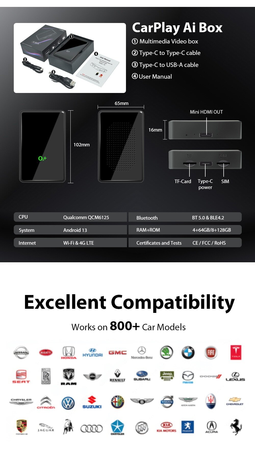 USB Plug and Play for Effortless Setup: The DriveMate AI System is designed for easy installation with a simple USB plug and play functionality. Just connect the device to your car’s USB port, and you’re ready to enjoy wireless CarPlay without the hassle of complex setup processes or additional wiring.