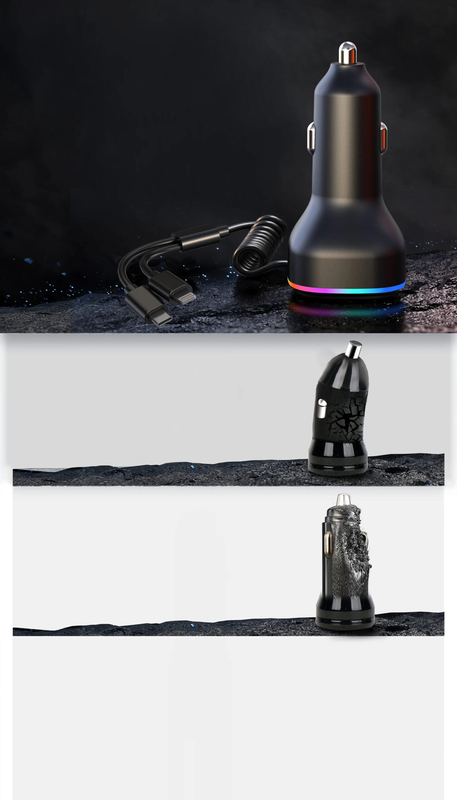 Compact & Durable: Space-saving design with reinforced connectors withstands daily plugging/unplugging. Non-slip grip ensures secure placement in any car outlet.