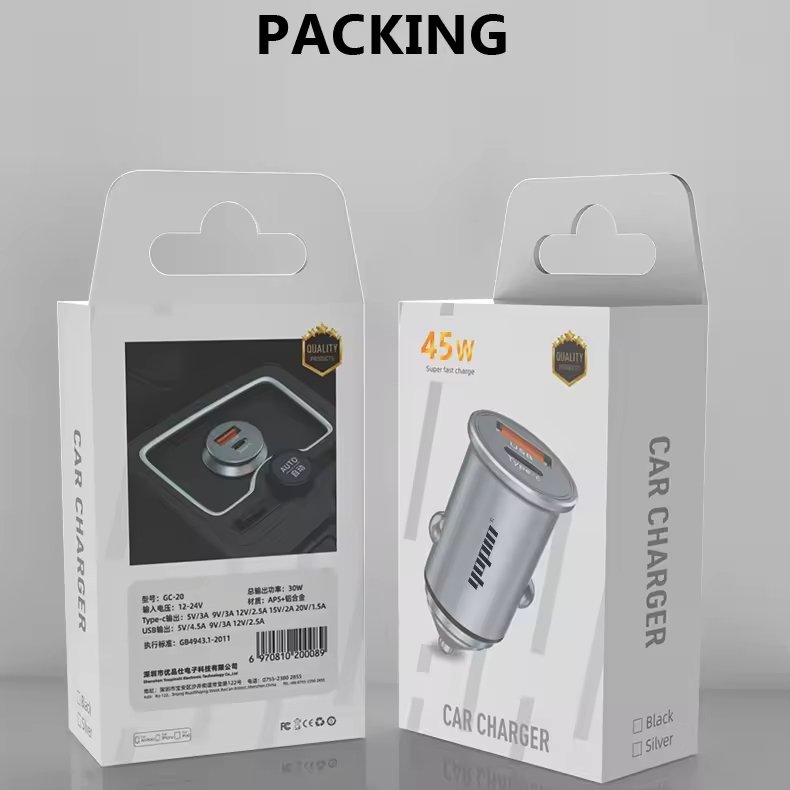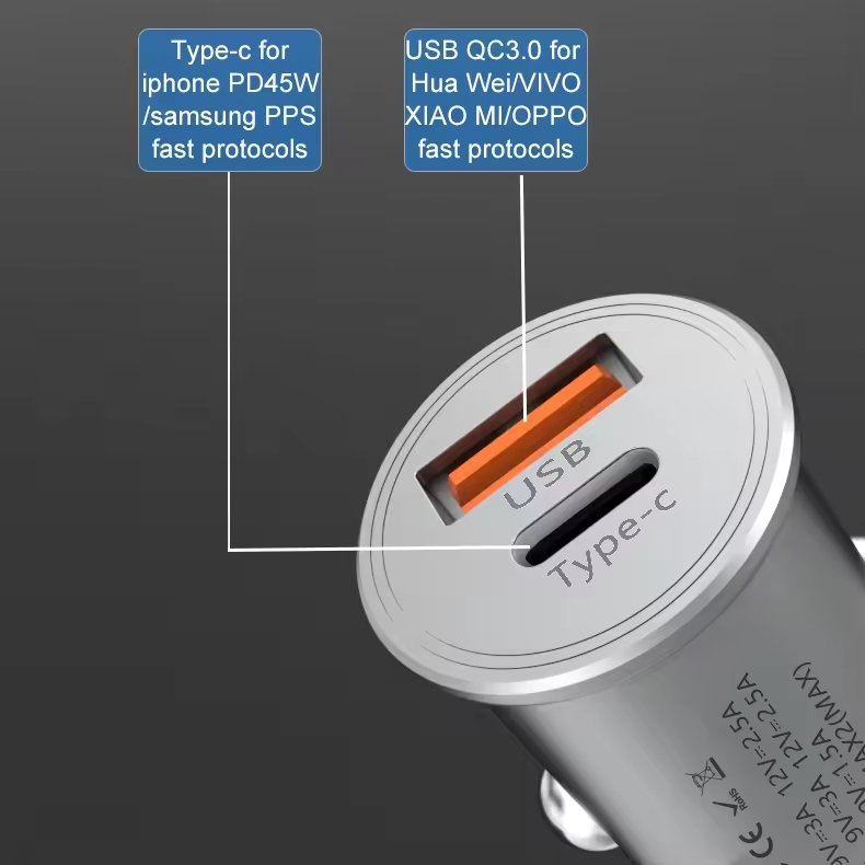 Power up all your devices at lightning speed with our premium 45W PD Car Charger, designed to keep both your smartphone and laptop fully charged during commutes, road trips, or daily drives. Featuring USB-C PD + USB-A QC dual-port fast charging, this compact powerhouse delivers 45W max output – making it the ultimate charging companion for professionals, travelers, and tech enthusiasts.