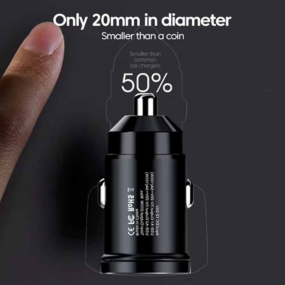 Crafted from aerospace-grade aluminum alloy with a sleek black finish, this compact 3.6×2×2cm car adapter delivers simultaneous fast charging through dual intelligent ports. Combining 18 precision manufacturing processes with 5-layer circuit protection, it provides 12V/24V wide-voltage compatibility for virtually all vehicles while maintaining just 22g of lightweight convenience. The adapter undergoes rigorous quality control testing, including 50,000+ insertion cycles and extreme temperature resistance (-20°C to 60°C) for reliable performance in all driving conditions.