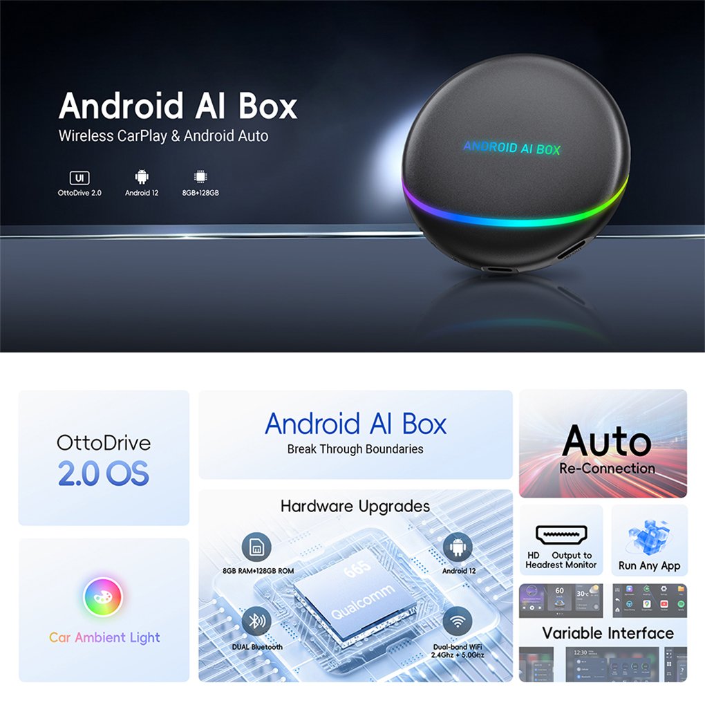 The Smart Car AI Box (Model PCS47) is a powerful, all-in-one upgrade for your vehicle’s infotainment system. Powered by the Qualcomm Snapdragon 665 processor and running Android 12, it transforms your factory display into a high-performance smart hub, supporting global 4G connectivity, wireless CarPlay and Android Auto, HD video output, and a host of smart multimedia features.