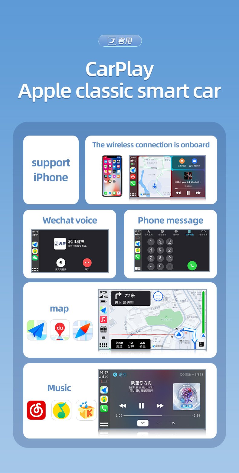 Easily convert your wired Apple CarPlay into a wireless experience with our Wireless CarPlay Adapter. This device supports essential CarPlay functions such as navigation, calls, music, and Siri voice control. It seamlessly integrates with steering wheel controls, touchscreen interaction, and knob operations for a complete hands-free driving experience.