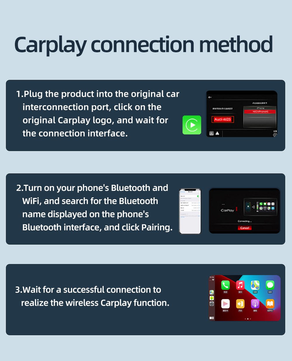 Say goodbye to cables and enjoy effortless in-car connectivity with the Wireless Conversion CarPlay Adapter. Designed exclusively for iPhone users with factory-wired CarPlay systems, this adapter delivers a smooth and wireless driving experience using advanced dual connection technology—all through a compact, plug-and-play device.
