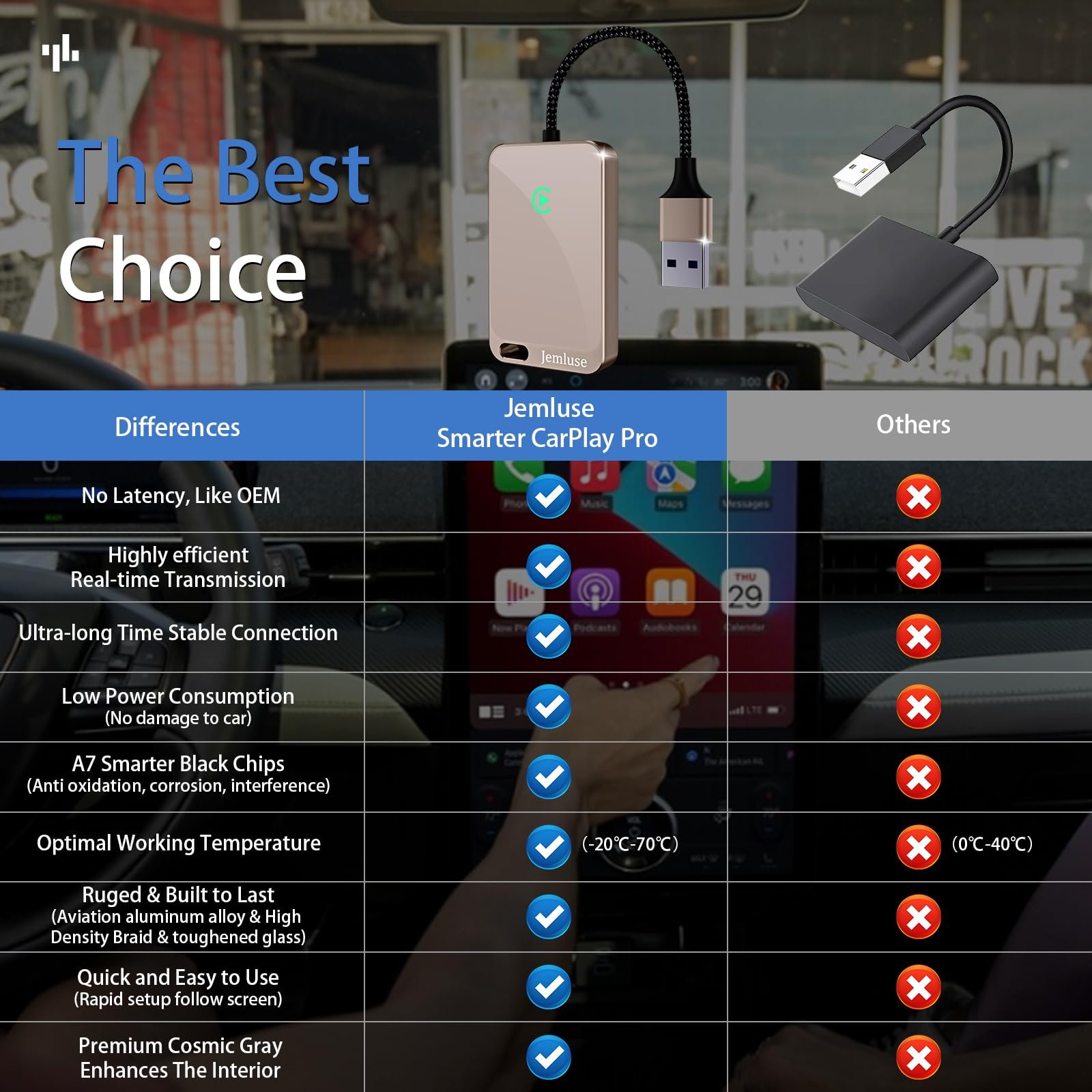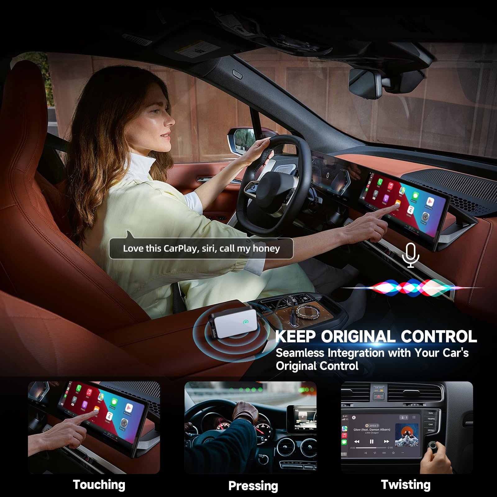The Wireless USB Adapter CarPlay & Android Auto transforms your wired car system into a cable-free smart hub, delivering instant wireless connectivity for both CarPlay and Android Auto. Built with a premium aluminum metal exterior and acrylic lens, this compact adapter features the powerful Allwinner 851 CPU and Linux system for smooth, lag-free performance. With dual-band WiFi (2.4G+5.0G) and Bluetooth 5.0, it ensures fast, stable connections while maintaining your car’s original display resolution.